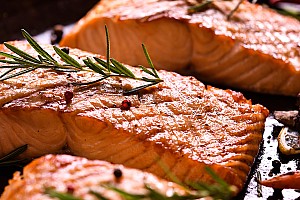 Lachsfilet vom Grill auf Champagnersoße mit Petersilien-Salzkartoffeln und ein kleiner Salat
